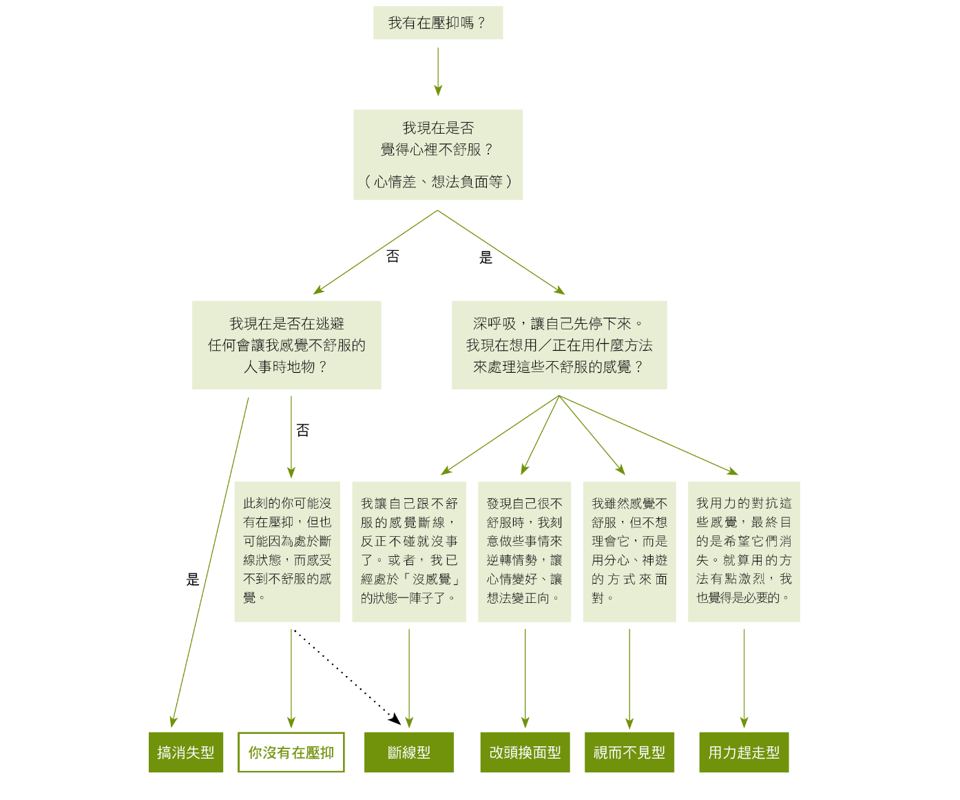 典型行為:在低潮的時候,強迫自己正向思考、告訴自己別想太多。